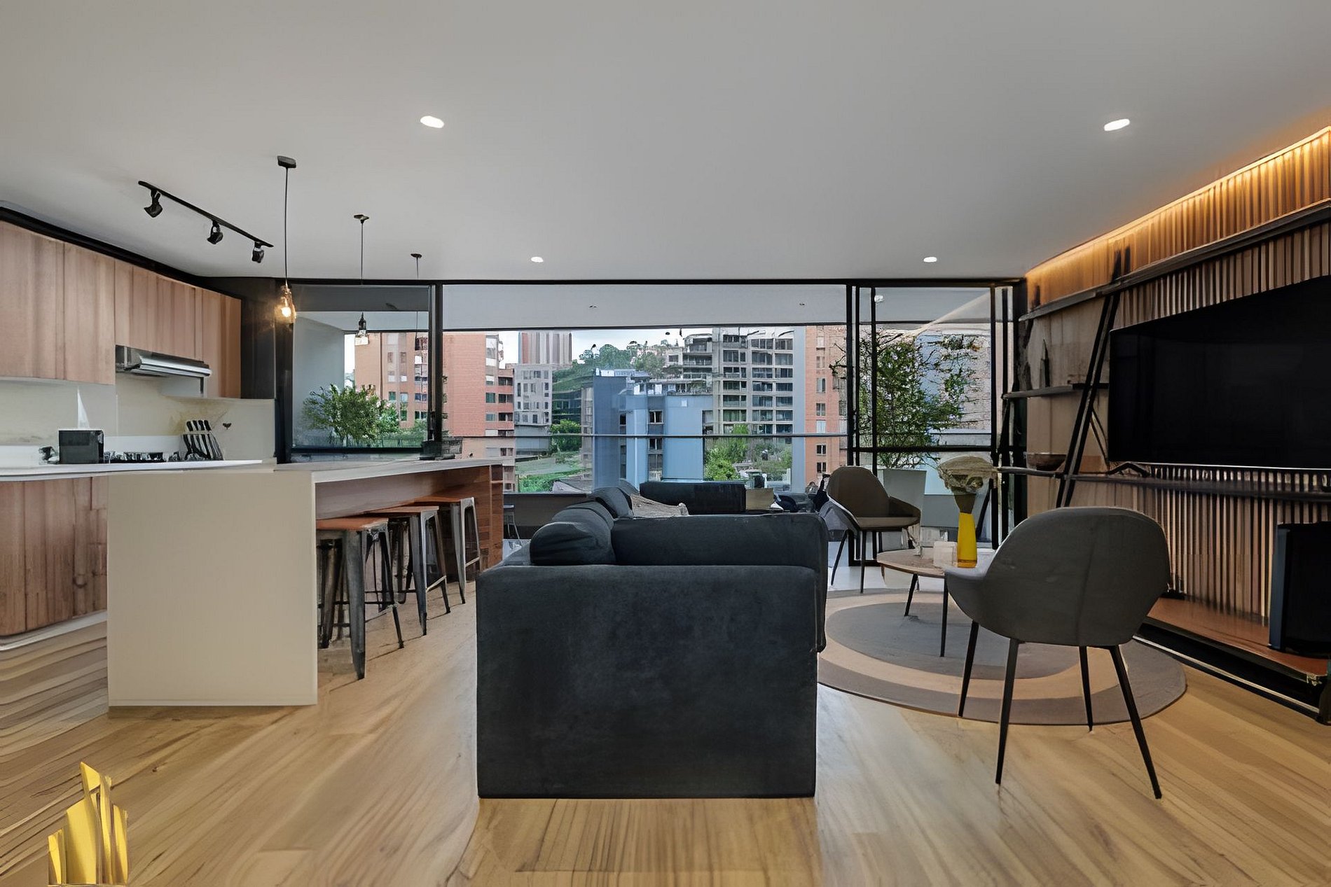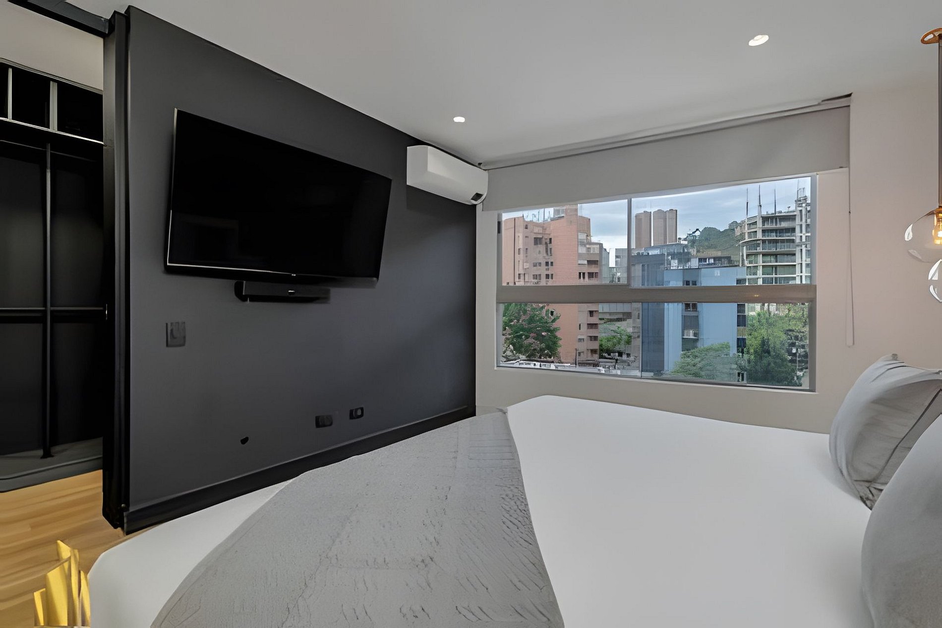 Hermosa suite para disfrutar, dos dormitorios, aire acondicionado y vestidor en la habitación principal, tres baños, sala de estar y cocina completa, gimnasio y una hermosa piscina con la mejor vista de la ciudad desde el amplio balcón. A menos de 5 minutos de los mejores centros comerciales, restaurantes y bares en Medellín. Al mismo tiempo, puedes disfrutar de un espacio tranquilo y sofisticado.