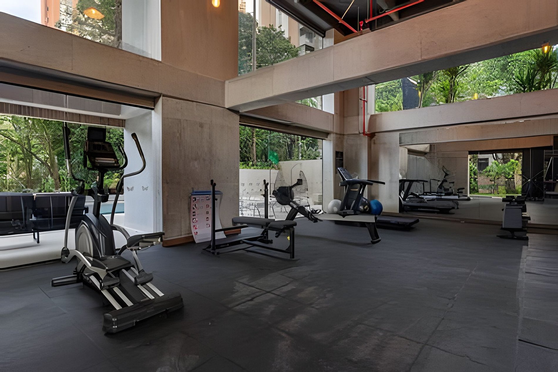 The building has a 24-hour doorman, swimming pool, gym, coworking and games area.
